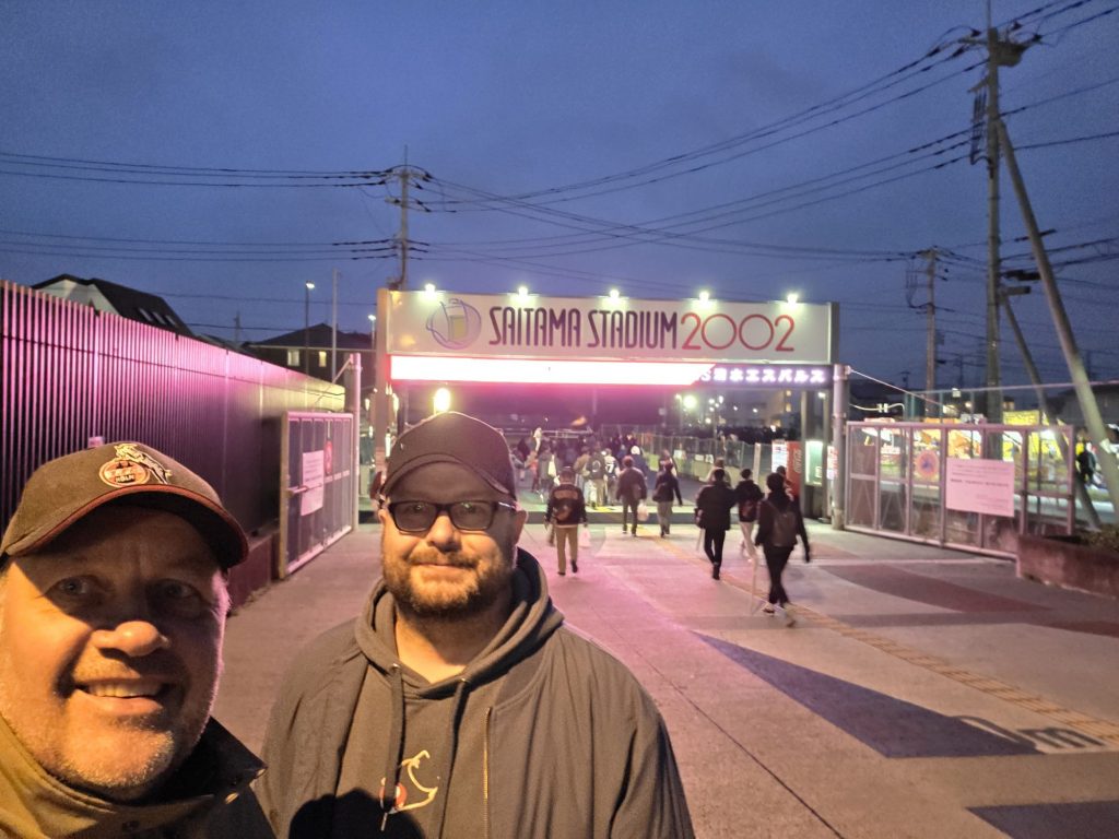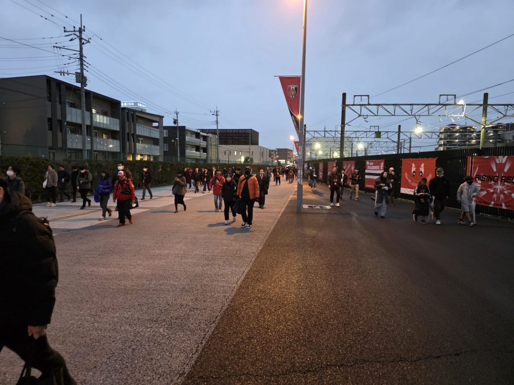 Vom Zielbahnhof ein netter Gang mit allen zum Saitama Stadion (gebaut für die WM 2002).